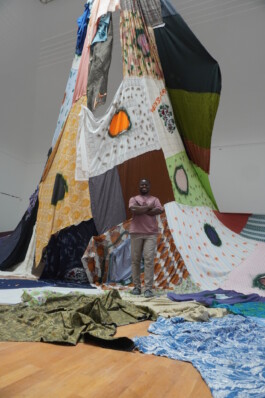 He works with discarded textiles and second-hand clothing to explore memory, identity,