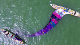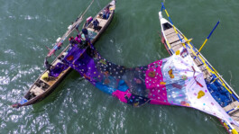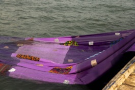 Between the continents a metaphor becomes a sail. The ribbon floats between two boats. The ocean becomes its stage. Migration. Movement. Connection. From the global South to the global North and back again.