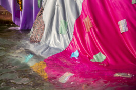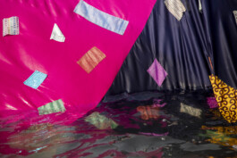 His textile installations are immersive: part performance, part provocation. Always